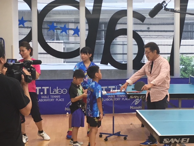 具志堅さんはご存知の通り、ボクシングでは世界チャンピオンにもなった運動神経抜群の持ち主で、なんとボクシングを始める前は卓球部に在籍していたこともあり、小学生相手に真剣勝負、悪戦苦闘しておりました。